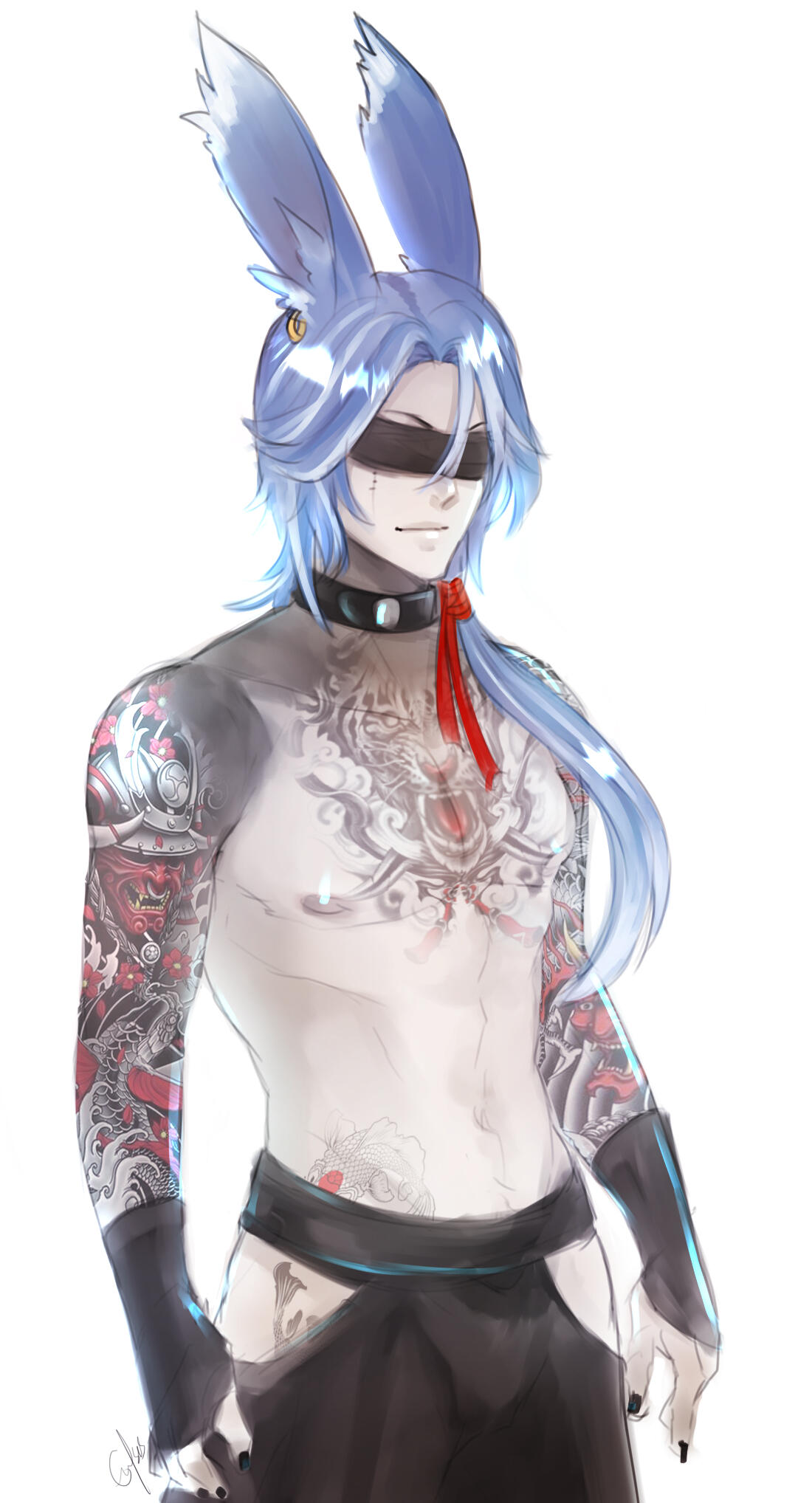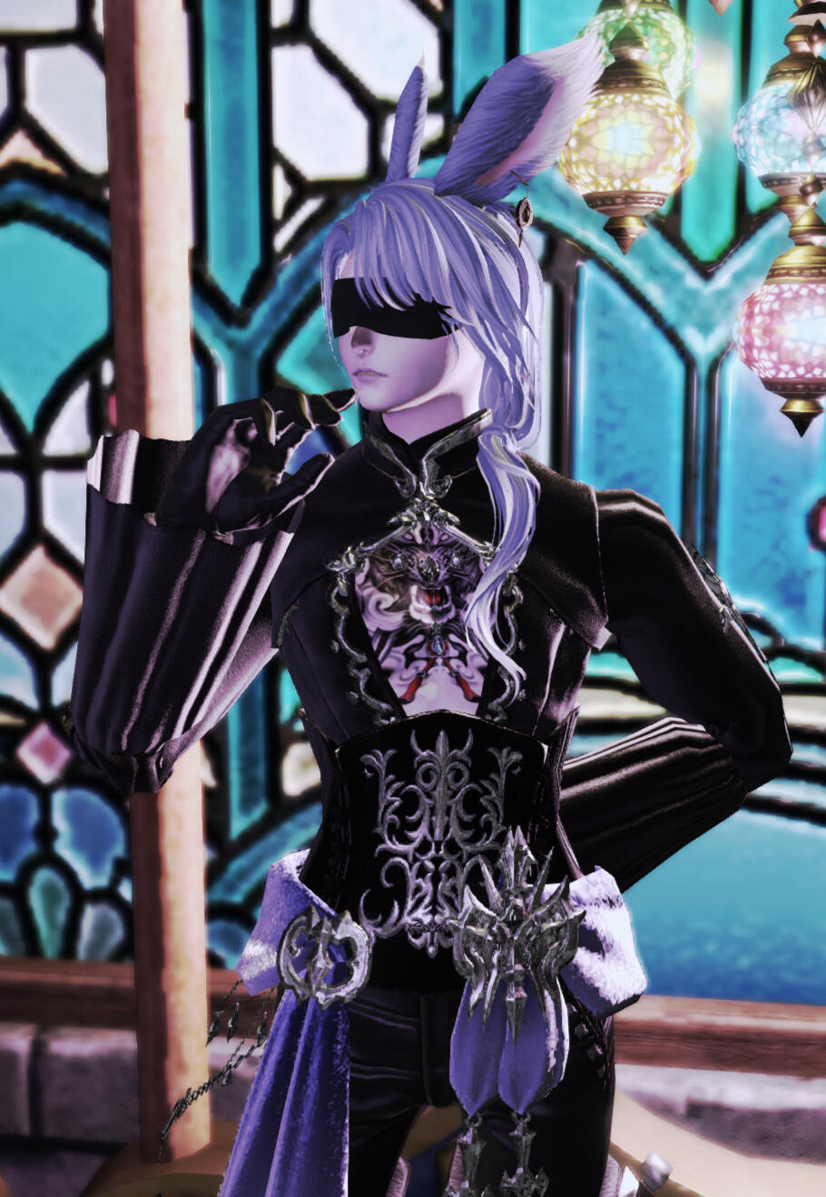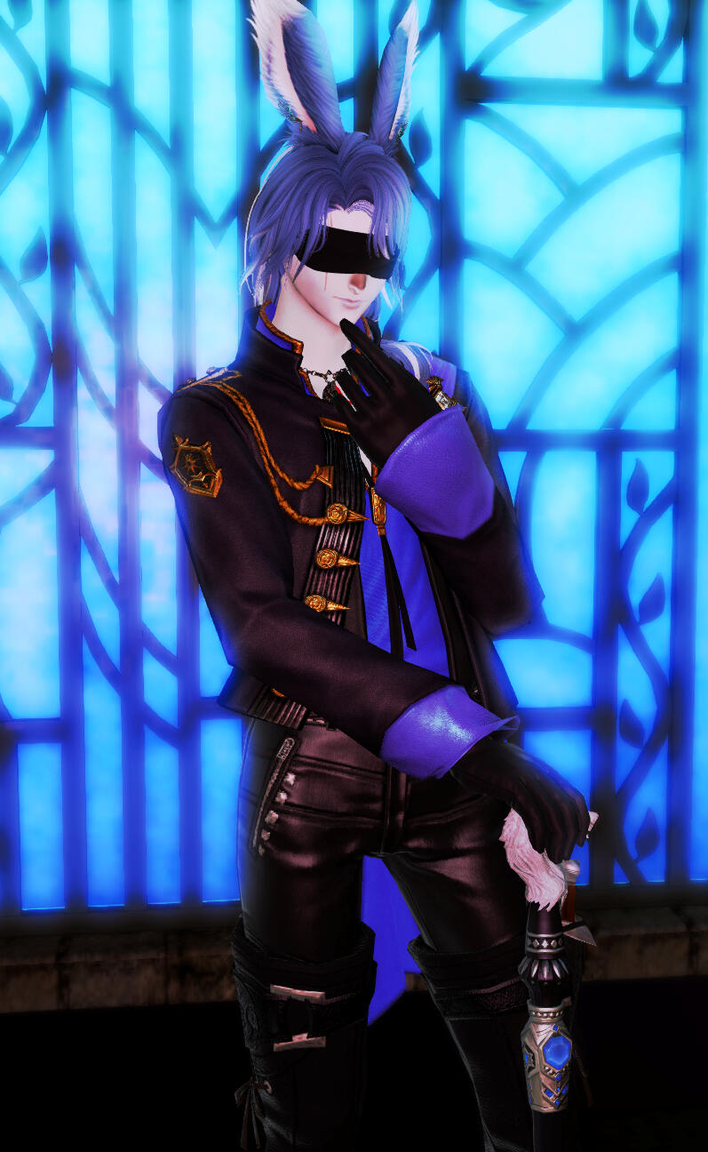 "There's a suspicious hooded guy wandering near the village. Do you think he's one of those... weird cultist guys or those whatever those 'Ascians' are? He's bad news." - Overheard from a villager."The Blind Minstrel? Yeah, I heard of that guy. He's got this lovely alluring voice that you can't seem to get it out of your head. His songs are stuck in my head for weeks!" - Overheard from an Ishgardian patron."He looks really sad and rueful. I have seen him walked across the snowy landscape of Coerthas, as if he was searching for someone or something." - Overheard from a Temple Knight."Oh, he has this really cute adorable siamese cat that keeps following him around and leading him to places like a guide dog! The cat seems... unusually intelligent though." - Overheard from a citizen of Ul'dah.InterestsLikes: Music, beekeeping, aether manipulation, scribing and reading braille books, dancing, opera singing, theatre performances, fighting, sex, dangerous endeavours, researching, creation magicks, archery, swordsmanship, interesting intellectual people, cats, accommodations for the visually impaired, Lahabrea.Dislikes: People trying to remove his blindfold, disrespectful, rude people, people who are insensitive towards the blind, insults against Lahabrea.