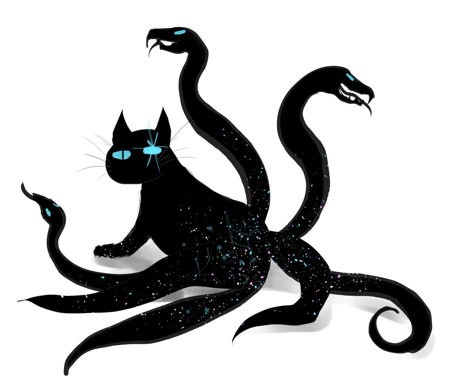 Aristaeus' void avatar is Autonoë the Voidsent Cat. When Aristaeus taps into his reaper powers, Autonoë lends her Void magicks and strength to Aristaeus. When she Enshrouds Aristaeus, she amplifies Aristaeus' powers and durability while he takes on a more monstrous form of stars, claws and serpents.When Autonoë was a kitten, she was caught in the Flood of Darkness where she was on the brink of death. Saved by Aristaeus who took pity on the little kitten at that time, she survived and became a voidsent. Many centuries later, Aristaeus would return to make a pact with Autonoë as Reaper and Void avatar.Autonoë is a beautiful voidsent feline with a body made of darkness, stars and constellations which seemed ever-shifting and shimmering as if galaxies exist within her. Her eyes are bright blue with a blinded left eye. She has multiple prehensile tails and three living serpents that are also part of her tails. The serpents are not separate entities but all extensions of her. When bitten by one of her serpentine 'tails', an immensely painful venom would be injected into her victim's flesh. Autonoë is capable of unleashing her own Void magicks and feasting on copious amount of aether as sustenance.When Autonoë walks among mortals, she disguises herself as a siamese cat or an Abyssinian cat. She is only as big as a small-sized adult cat.Autonoë's AbilitiesEnshroud and Connected to Master - Autonoë enshrouds Aristaeus as his vessel serves as a host for Autonoë. In his Enshroud form, he turns into an eldritch-like, monstrous entity of powerful void abilities. Enshroud also augments Aristaeus' present abilities and strength. She and Aristaeus are connected to each other as void avatar and host.Techno-telepathy - Autonoë is capable of linking herself to aetheric-based technology and networks, such as linkshells, Allag devices, etc. She is able to 'speak' to technology through her unique aetheric abilities.Void Levin, Void magicks and Dark elemental magicks - As a fifth rung voidsent, Autonoë has access to dark/voidal magicks and spells. She is able to electrify people with her void levin capabilities.Aligned with the Stars/Constellation - Coupled with her feline instincts, Autonoë has affinity with the stars to sense and predict danger. Unfortunately, she's not very good at communicating it because cat. The constellations on her body shift to warn or foretell omens.Void Healing
